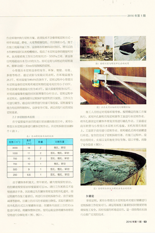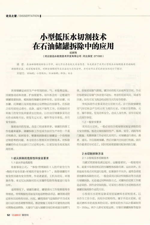 “小型低压水切割技术在石油储罐拆除中的应用”论文发表