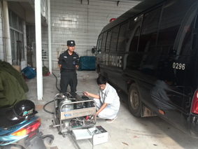 今年下半年,应地方公安邀请,由我公司领导唐浚凯经理带队前往广东、重庆等地公安部门现场演示“水刀坊”便携式水切割。