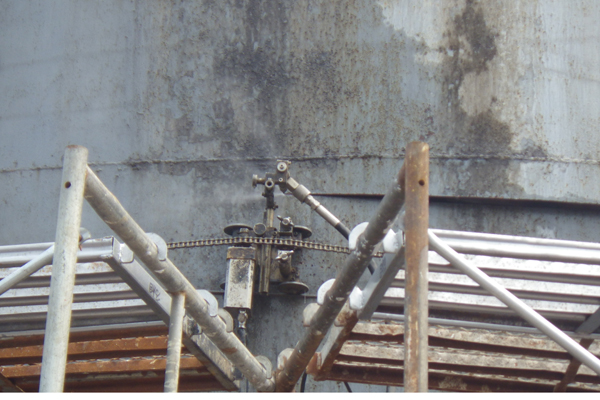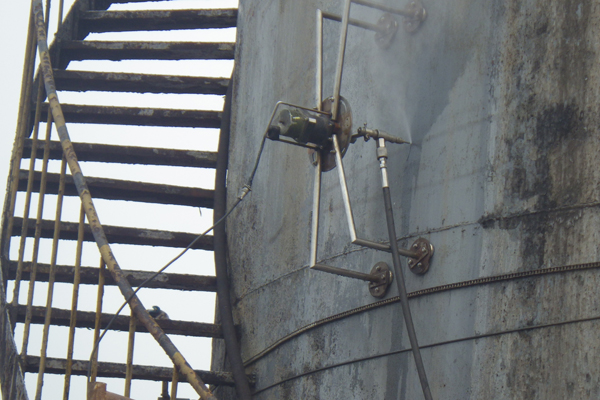 我公司技术人员采用自主研发的小型低压水切割设备对粗苯槽罐进行整体拆除。由于是高空作业,技术人员先在指定位置搭设脚手架,然后用开孔器在罐体上部和下部各开4各吊装孔,在罐体下部将其整体环绕切割,最后将与相邻罐体之间连接的通道切断。整个切割过程无高温和明火出现,安全可靠,出色的完成了此项切割任务。切割后将罐体吊装移动到合适位置进行处置。合作单位对本次粗苯槽罐拆除工作的顺利完成表示了高度认可,并提出再次合作的意向。