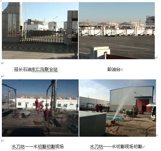 个方罐体卸油台连接板的拆除,罐体为储油罐,因常年使用,已存在安全隐患,现将其拆除,若采用火焰切割容易造成爆炸等危险,所以采用冷切割——水切割。将罐体连接处使用直线滑台切割,表层及竖直面各切